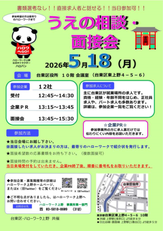 ハローワーク上野ホームページ「うえの相談・面接会」(外部サイト)をご覧ください。