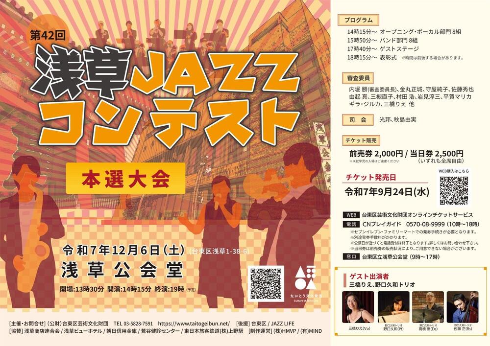 「第42回浅草JAZZコンテスト」本選大会開催のお知らせ