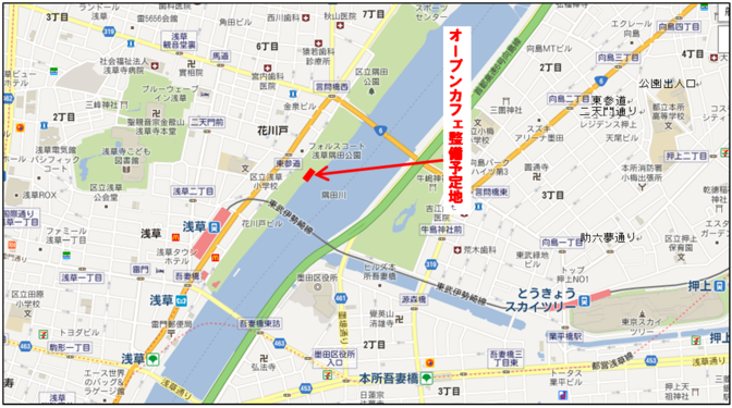 東京スカイツリーを臨む絶好のビューポイントである台東区立隅田公園内の河川区域に、水辺空間を活用したオープンカフェの出店事業者を公募していましたが、審査が終了し以下の通り決定しました。