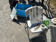 それと同時に前回の活動で用意したサクラの枝を配布し、普及啓発を行います。