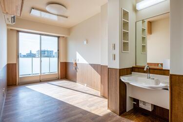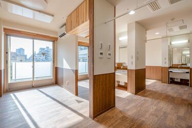 竜泉福祉センター「いきいきテラス」に続き台東区立特別養護老人ホーム竜泉が完成しました。こちらは施設1階に地域交流スペースを設置し、区民の皆様がどなたでも使える場所となっており、その他にもデイサービス・地域包括センター・歯科健康センターなど特別養護老人ホームを含めた複合施設となっております。今回の工事にあたり1階の地域交流スペースには台東区の街並みをデザインしたサインを使用し、利用者が台東区に愛着を持って使用して頂けるよう工夫をしております。また特別養護老人ホームには多床室・個室と2パターンあり入居者様のスタイルに合わせられるようになっています。各ユニットでは目で楽しんでいただけるよう、それぞれ植物をテーマにしたサインを採用するなど工夫をしております。