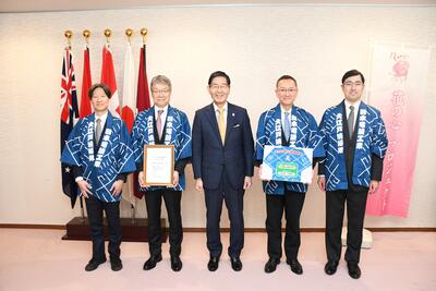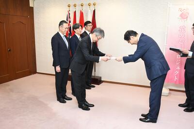 日本電設工業株式会社の皆様(中央:服部台東区長)