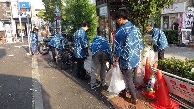 当日は3名で活動を行いましたが、法被姿が珍しかったのか、特に外国人の方々から注目を集め、写真を撮られたり、「何をしているの?」と声をかけられたりする場面もありました。今回の活動を通して、少しでも街ゆく人々が環境美化について考えるきっかけになっていれば嬉しく思います。