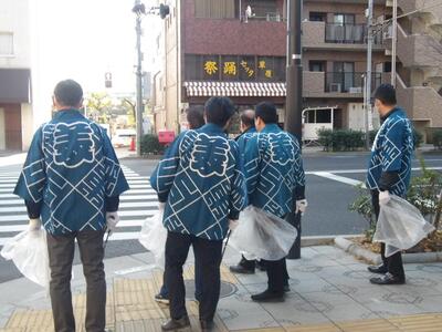 お揃いの半てんを着用することで、環境美化意識の向上を図ります。
