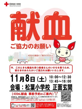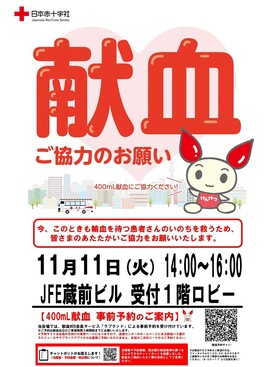 ※予定が変更される場合もありますので、東京都赤十字血液センター 献血バス運行スケジュールでご確認ください。