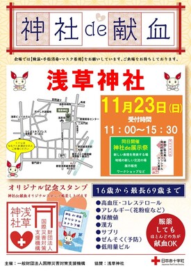 | 11月23日(日曜日) | 11:00~15:30 | 浅草神社 浅草2丁目3-1 |