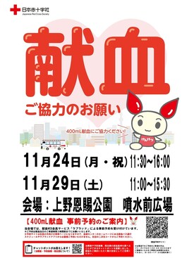 | 11月29日(土曜日) | 11:00~15:30 | 上野恩賜公園 噴水前広場 上野公園5番-20 |