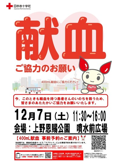| 12月 7日(日曜日) | 11:30~16:00 | 上野恩賜公園 噴水前広場 上野公園5-20 |