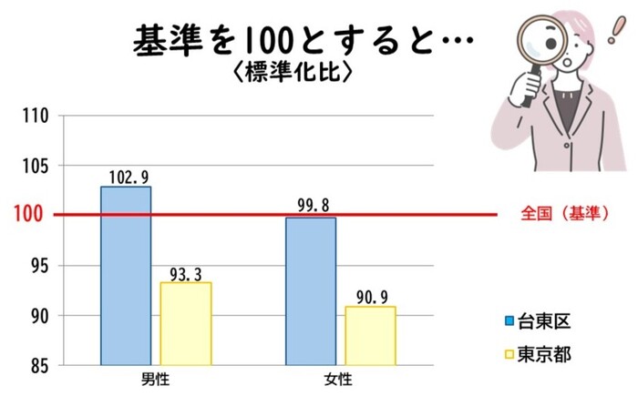 台東区の総合健康診査の結果、糖尿病予備群の方(HbA1c値が5.6~6.4%)には国民健康保険課からチラシをお送りしています。チラシが届いた方は、ぜひ栄養相談を受け、食事の見直しましょう。