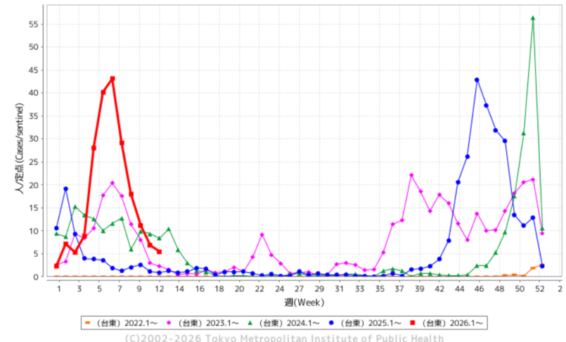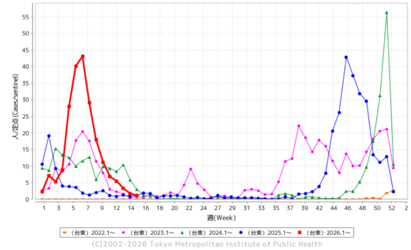 台東区におけるインフルエンザ発生状況