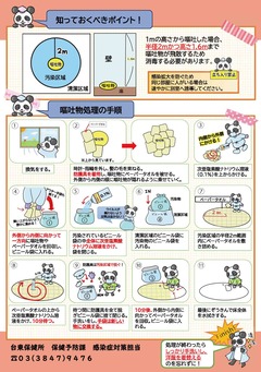 台東保健所では、嘔吐物処理の手順やポイントをまとめた動画とチラシを作成しています。