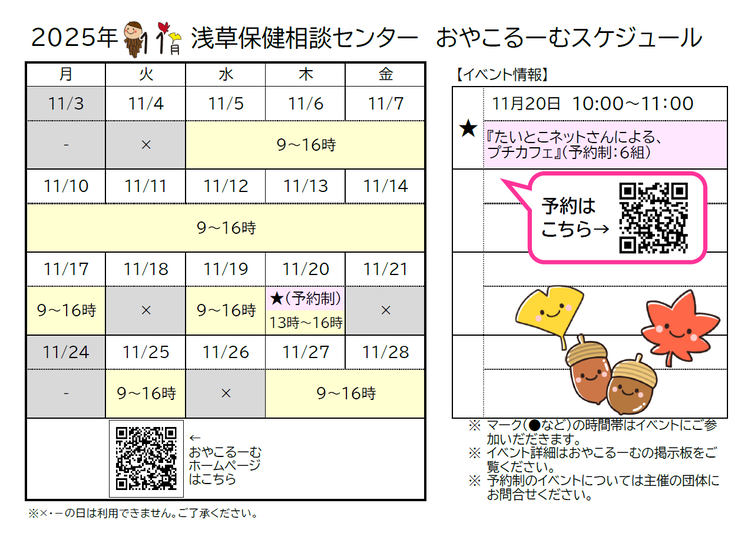 *健診等によりご利用できない日時があります。利用日時は、各月のスケジュールをご確認ください。