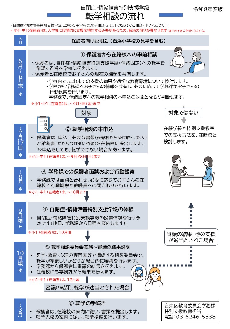 なお、学級新設に伴い、特別支援教室拠点校を石浜小学校から東浅草小学校(令和8年4月)、御徒町台東中学校から忍岡中学校(令和9年4月)に変更します。