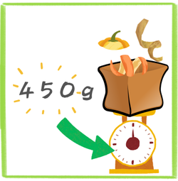 LFCコンポストに1日に投入できる生ごみの量450g!450g分を量りに乗せて、ピッタリ450gに挑戦!