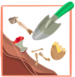 堆肥の中を掘って、どんな食べ物だったか当ててみよう!