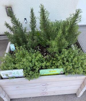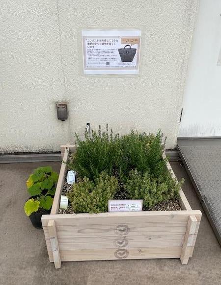 区役所屋上ガーデンの花壇で、栄養満点の堆肥を使ってハーブを育てています。