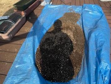 堆肥と園芸用土を1:2で混ぜ合わせて、土づくりを行いました。