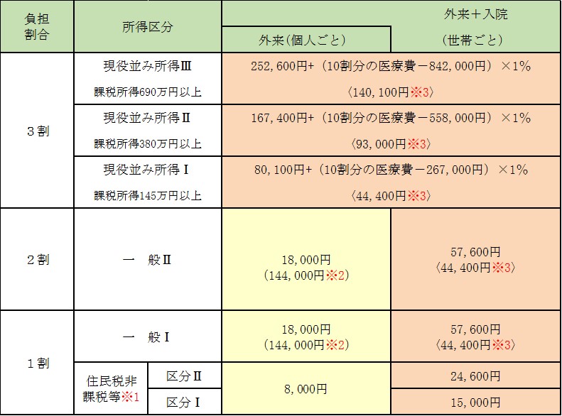 <負担割合3割の方の高額療養費計算について>