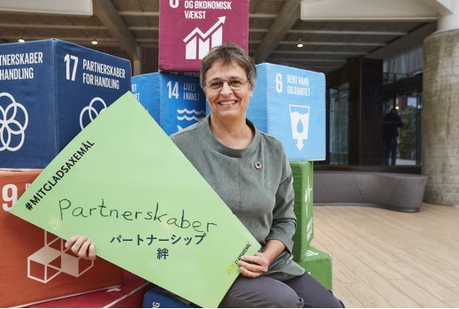 台東区とグラズサックセ市の姉妹都市提携20周年を記念して、台東区役所と生涯学習センターに設置された「区政情報モニター」で祝賀放映しています。祝賀放映ではグラズサックセ市長 トリーネ・グレーゼ氏が「パトナーシップ、絆」という意味のデンマーク語≪Partner skaber≫と書かれたボードを掲げています。