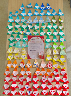 クリスマスツリーにかざったサンタとトナカイを展示しています。ぜひ見にきてください。