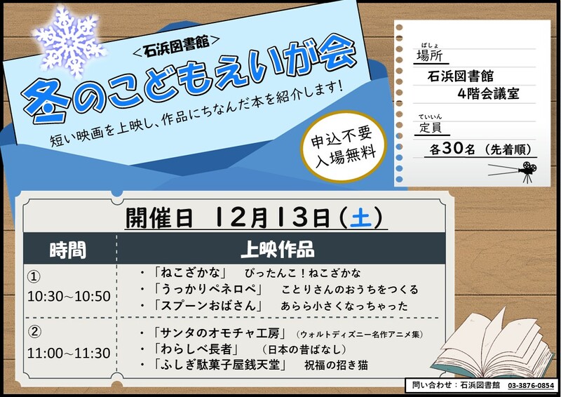 上映作品:『サンタのオモチャ工房』『わらしべ長者』『ふしぎ駄菓子屋銭天堂』
