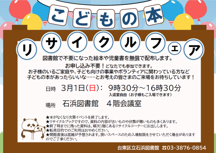 ・終了時までに残った資料は、順次1階にあるリサイクルコーナーにお出しします。