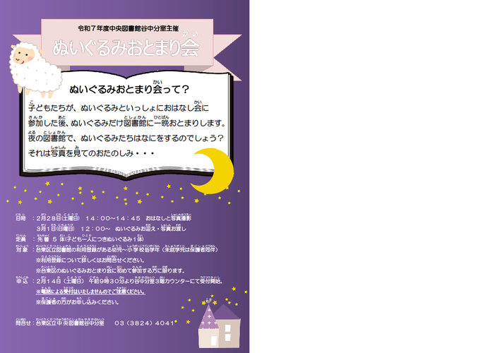 ※台東区のぬいぐるみおとまり会に初めて参加する方に限ります。