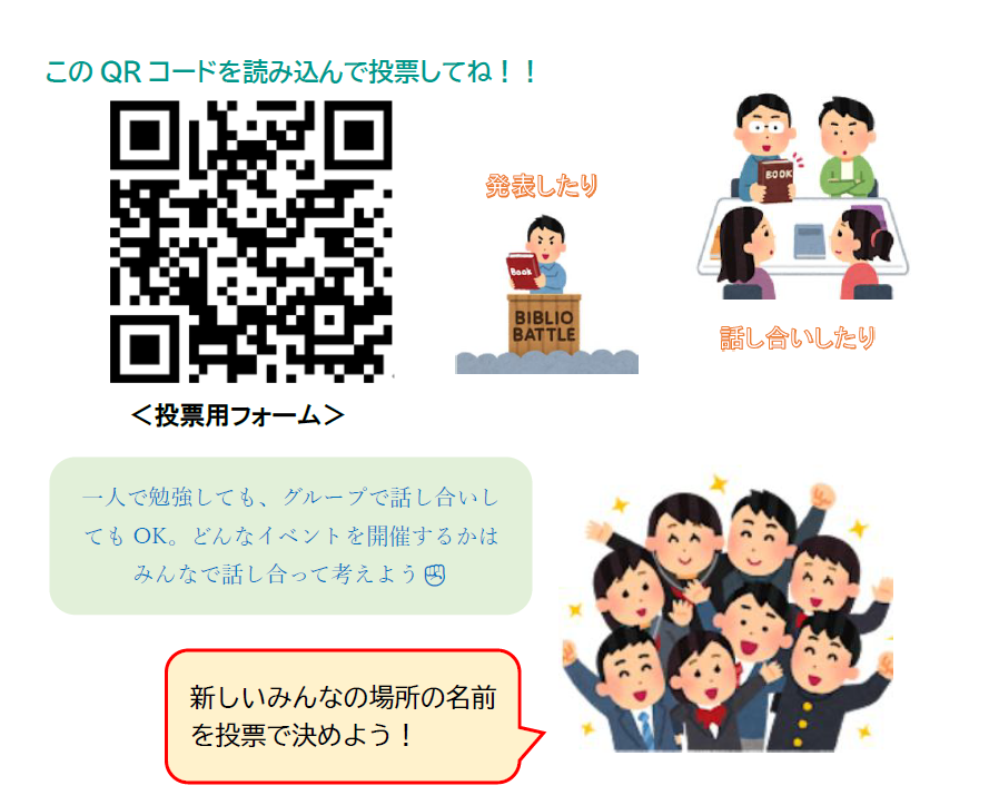 実際にこのスペースを利用する皆さんに投票で決めていただきたいと思いますので、たくさんの投票をお待ちしています。